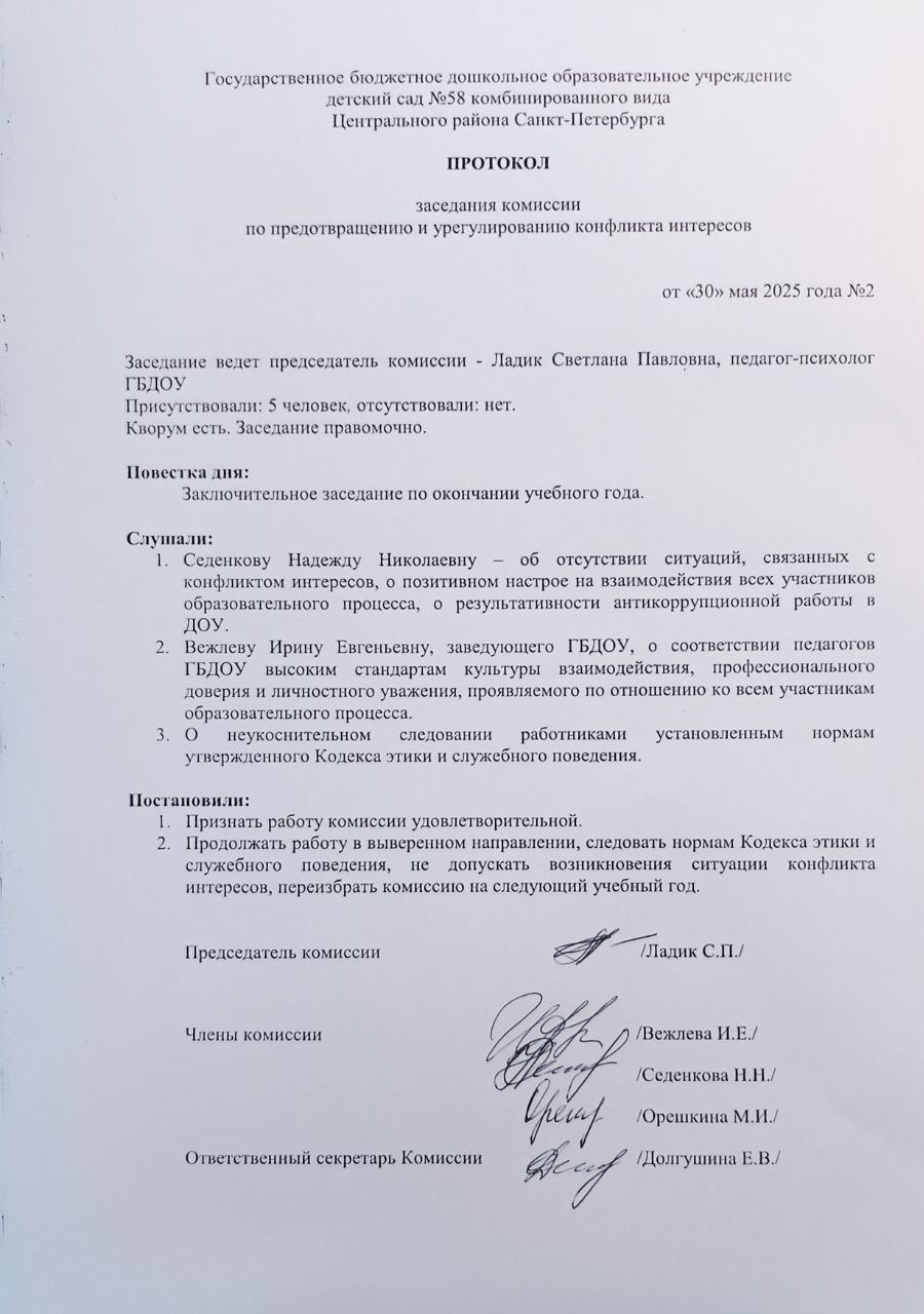 - заседание Комиссии по предотвращению и урегулированию конфликта интересов от 30.05.2025